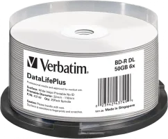 Spindle de 25 BluRay BD-R DL imprimables Verbatim DataLifePlus - 50Go