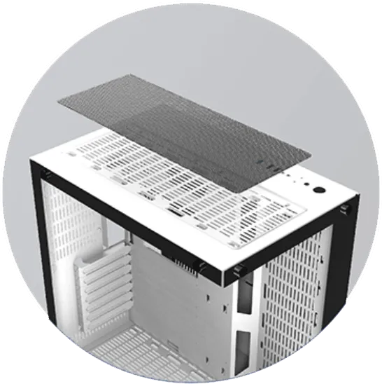 En plus de toutes les fonctionnalités déjà présentes, le boitier Aquarius Plus est fourni avec 2 filtres anti-poussières magnétiques au dessus et en dessous du boitier.