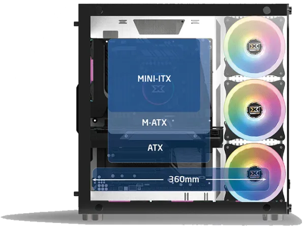 Le boîtier ATX Xigmatek Aquarius Plus vous permet d'accueillir tous les formats habituels de cartes mères, du mini ITX à l'ATX en passant par le Micro-ATX.