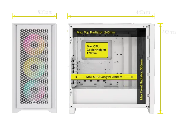 Le boîtier Corsair iCue fonctionne en aRGB avec le logiciel Corsair iCue et iCue Lighting Node Core pour contrôler et synchroniser l'éclairage de vos ventilateurs Corsair inclus.
