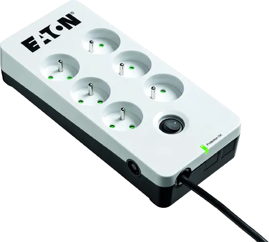 La Multiprise Surtension Eaton Protection Box 6 prises (Noir) dispose de 6 prises françaises, qui reste protégées des surtensions et de la foudre.