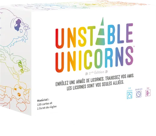 Avec le Jeu - Unstable Unicorns, vous allez commencer par un bébé licorne dans votre petite écurie. Ne vous attachez pas, les bébés licornes ne sont pas en sécurité. Ils suscitent beaucoup de jalousie, et vos camarades font tout pour massacrer votre cheptel.