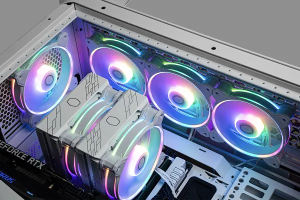 En outre, il est doté d'un système d'éclairage RGB adressable en double anneau avec 16,7 millions de couleurs qui peuvent être synchronisées avec votre matériel et vos logiciels pour une expérience visuelle impressionnante et personnalisable avec le logiciel de Cooler Master, MasterPlus+.